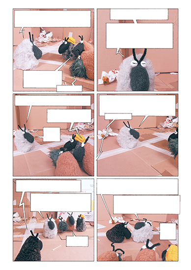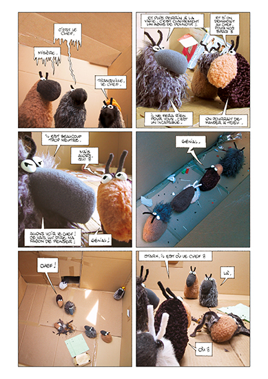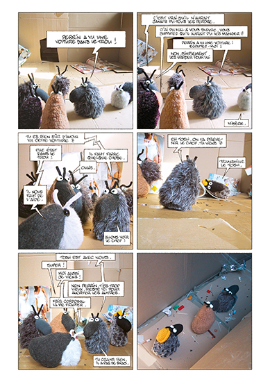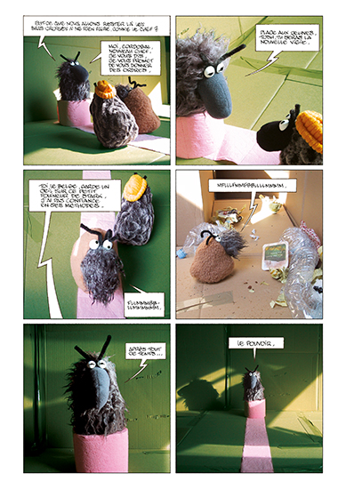 2 récits réalisés collectivement avec Jean-Paul Krassinsky et David Calvo, tout en peluche, en photos et en BD. Série adulte, photographiée en intérieur avec des décors recyclés.